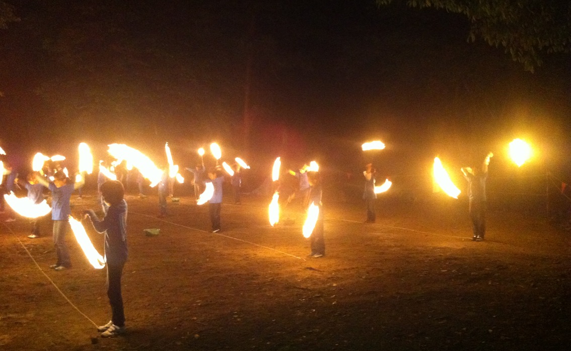 高学年になった息子は学童伝統のトーチ棒(先端に火がついた棒)の団体演技。成長を感じます・・・