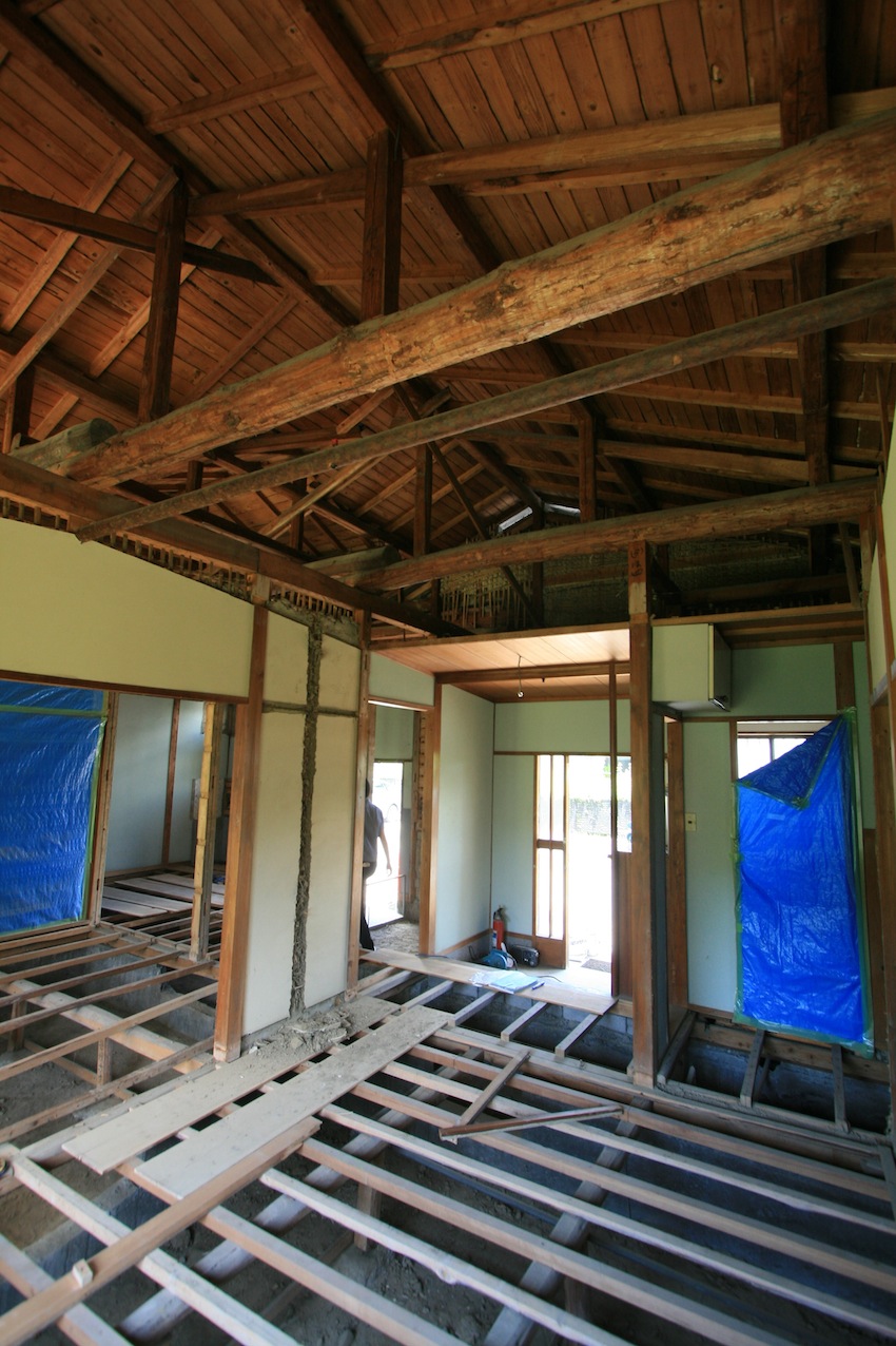 素朴でシンプルなつくりと天然素材がもつ肌合いの良さ、そして98cmを基本寸法とした大らかな空間(一般的な木造建築が91cmを基本寸法としていますので、大分ゆったりした印象です)といった既存建物の特徴を活かしながら、現代的な生活に沿ったすまいとなる計画です。