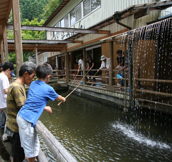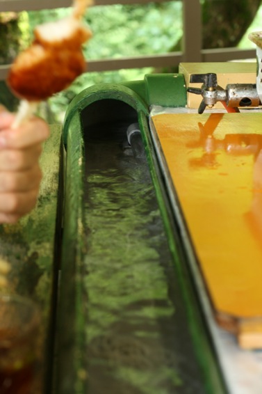 岐阜県美並村の山あいにある流しそうめん屋さん。
