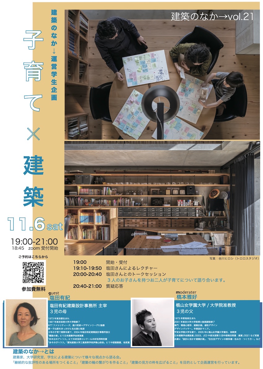 今年5回目となるJIA(日本建築家協会)愛知・大学特別委員会主催の名古屋市立大学 芸術工学部 2020年度後期授業「建築家の仕事」にて、今年も講義を担当させていただきます。
