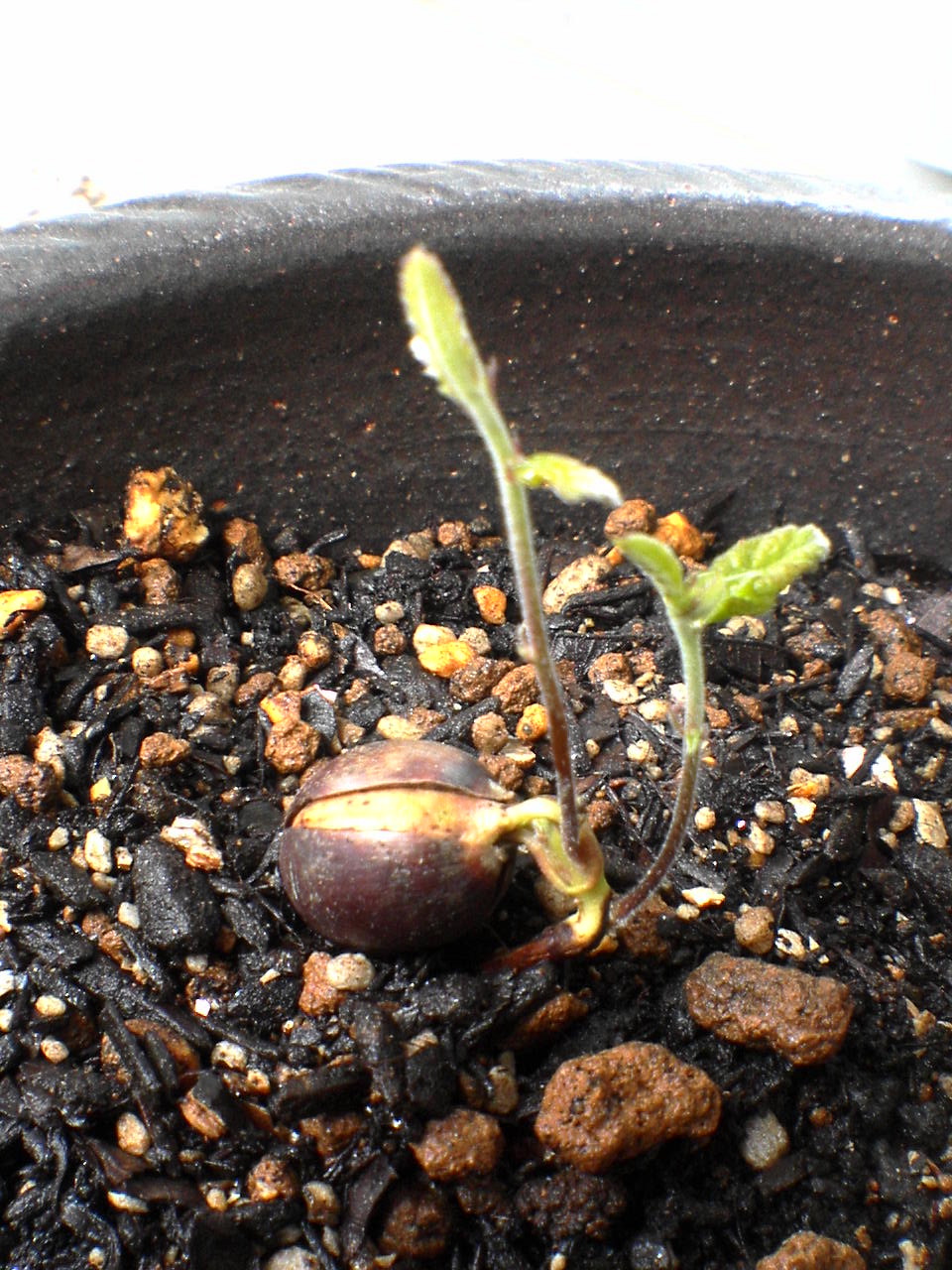 昨年の秋に様々な場所で拾っては水につけ、冷蔵庫に収蔵していたどんぐり達の事をすっかり忘れて月日は経ち・・・6月上旬、土に植えてみました。およそ1ヶ月経った現在では、クヌギは12コ中7つの芽が出ています。クルミ・イチョウ・ハクウンボクは、沈黙を守っています。