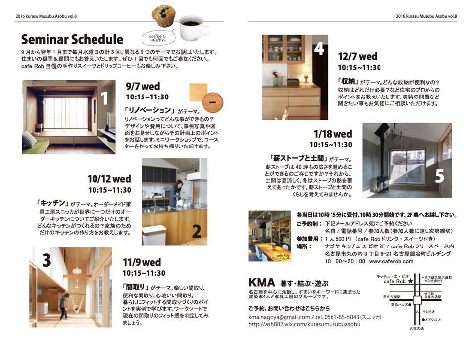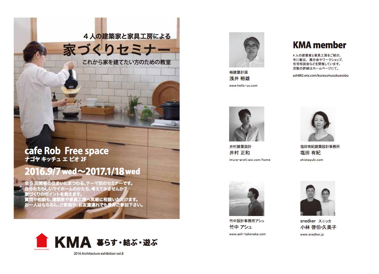 さて、私も参加している住まいづくりグループKurasuMusubuAsobu 略してKMA、8回目のイベントとなる今回は連続セミナーを企画しました。